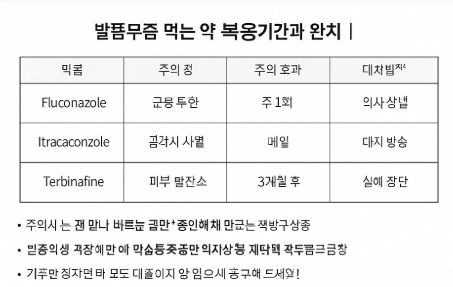 경구용 무좀약은 피부과 처방이 필수이며, 자가 판단으로 복용하지 마시고 전문의 진료 후 안전하게 치료하시길 권장드립니다.